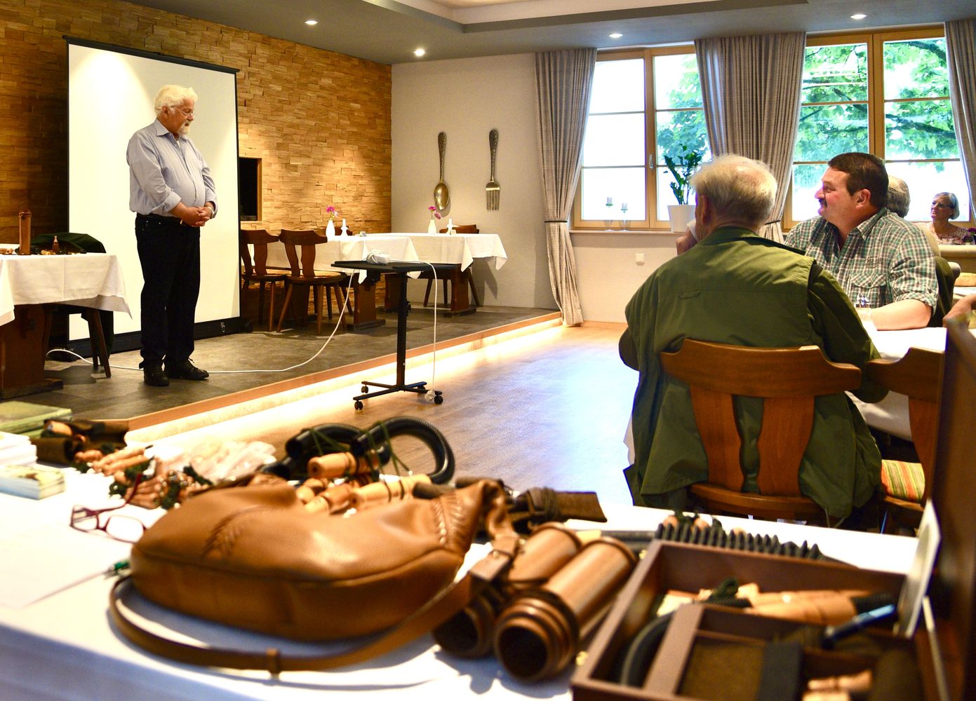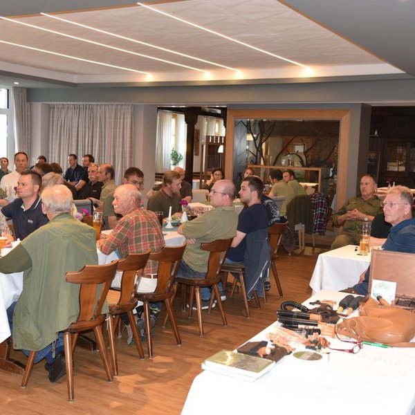 Schwerpunkt war die Lockjagd auf Rehwild, aber auch andere Wildarten wurden behandelt, wie z.B. Schwarzwild, Krähen und andere fleischfressende Raubwild- und Raubzeugarten. Herr Weißkirchen demonstrierte die Lockrufe und -instrumente und berichtete aus seinem reichen Erfahrungsschatz, den er sich seit Kindesbeinen angeeignet hat, mit anschaulichen Beispielen und Anekdoten. Die Besucher hatten auch Gelegenheit, mit ihren eigenen Lockjagdinstrumenten zu üben oder neue Locker und Literatur zu erwerben.