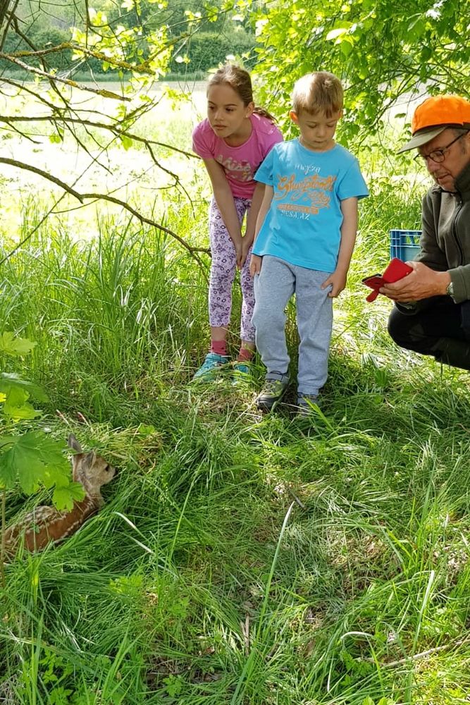 Und so traf sich das Geschwisterpaar mit den Lauchheimer Jägern in aller Frühe, weil" Papa will gegen 10 Uhr mähen!" so die Auskunft der Geschwister, die voller Eifer bei der Sache waren und auch mit Staunen die gefundenen Kitze betrachteten und vorsichtig nach erfolgtem Mähen in die freie Natur entließen. Für alle Beteiligten ein einmaliges Erlebnis.